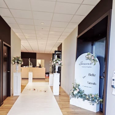 Supplément de 50€ par composition florale sur la colonne et 25€ par bougeoir sur colonne