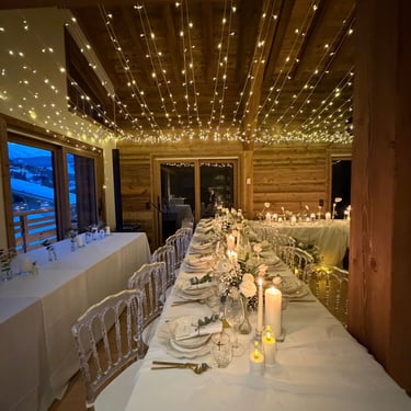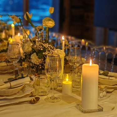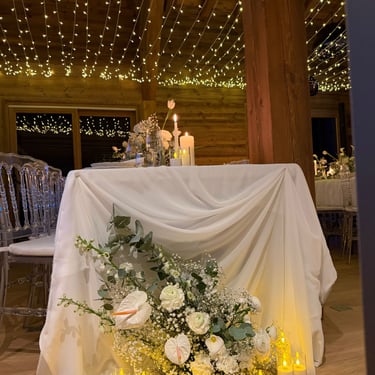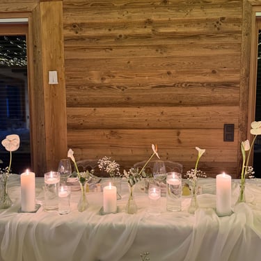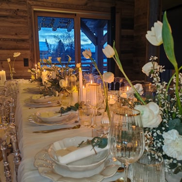 Pour toutes les décorations de table hors formules (longueurs de tablées rectangulaires, decor de multi soliflores, bougies et photophores sans centre de table, nous consulter pour obtenir un devis sur mesure.